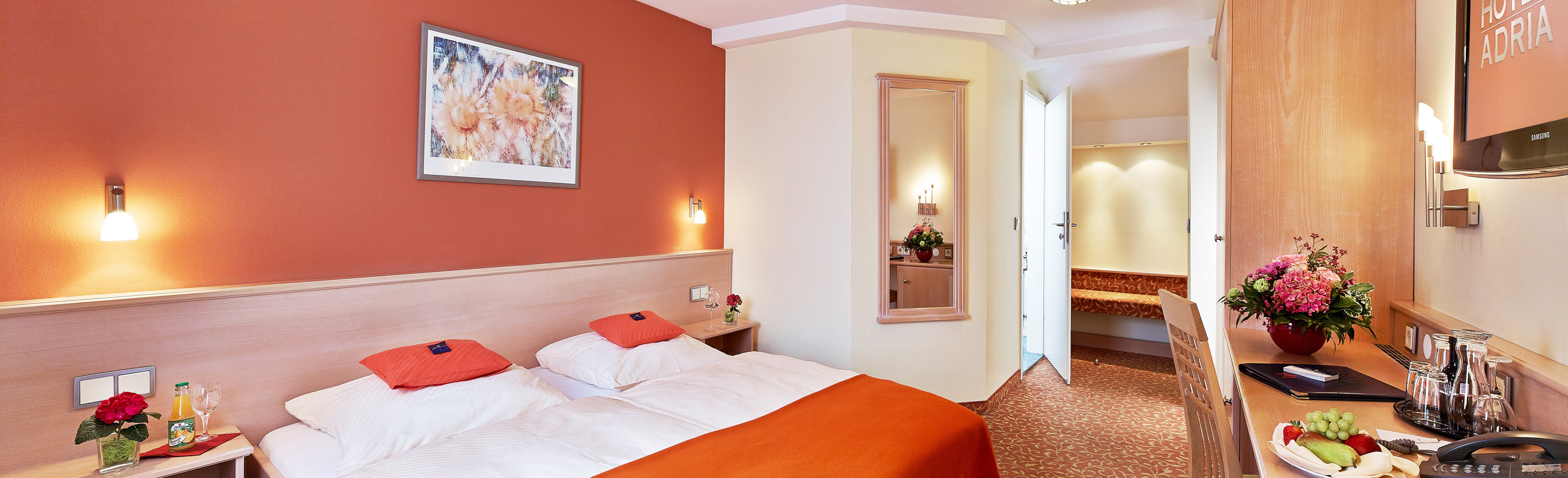 Our comfort rooms (18-22 sqm) offer additional comfort with generous space. You will find a large double bed with separate mattresses for best sleeping comfort. In addition, this category offers a comfortable armchair and a larger writing desk.