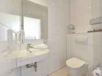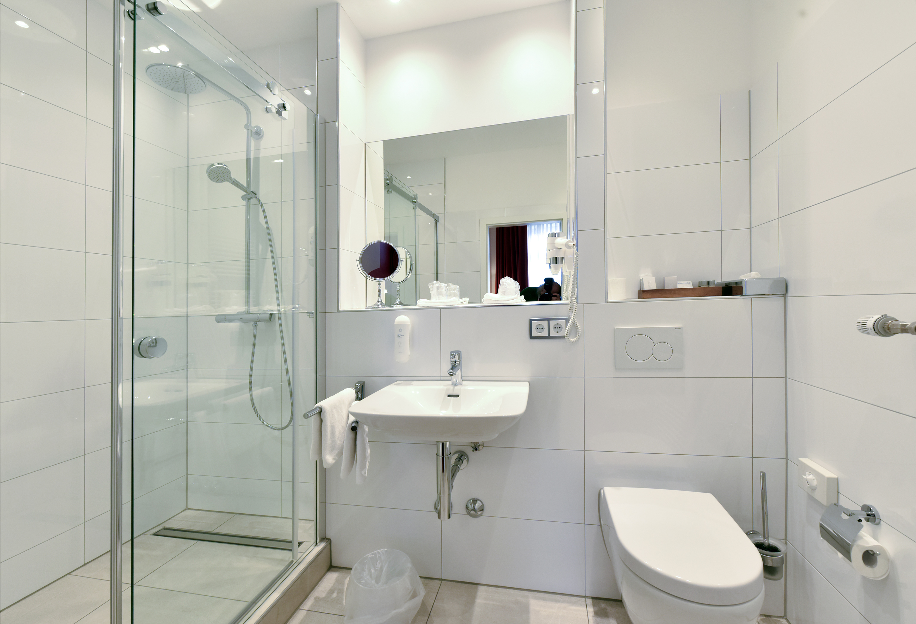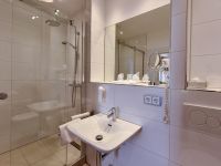 Auch in dieser Kategorie haben Sie die Wahl zwischen einer Dusche oder Badewanne. Zusätzlich finden Sie im Bad einen Kosmetikspiegel. Ebenso stehen Ihnen eine Auswahl von Kosmetikartikeln sowie Badeslipper zur Verfügung.